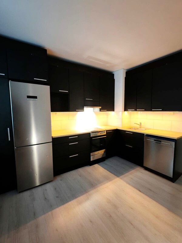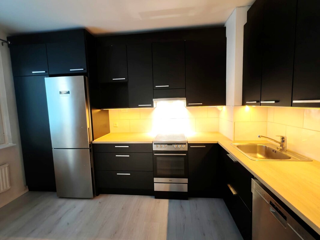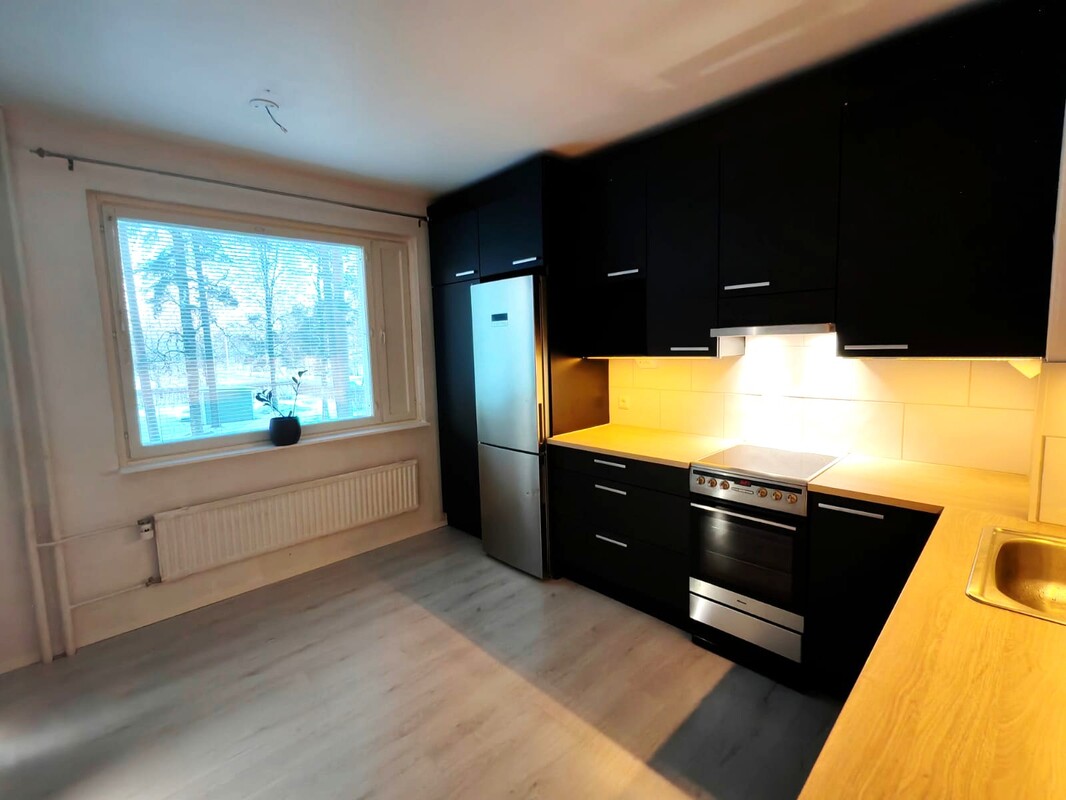 Remontoitu siistikuntoinen kaksio lasitetulla parvekkeella. Tyylikäs moderni musta keittiö! Tilava vaatehuone. Esteetön kulku, Hissi lähtee maan tasalta. Tervetuloa!