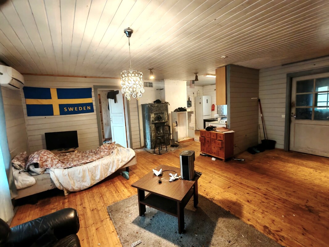 Till salu på Klockarbacken i Nedervetil egnahemshus med stock stomme och skyddad tomt som är den sista längs med vägen. Öppen planlösning,, ackumulernade spis. Huset behöver en ordentlig renovering inuti. Välkommen på visning!