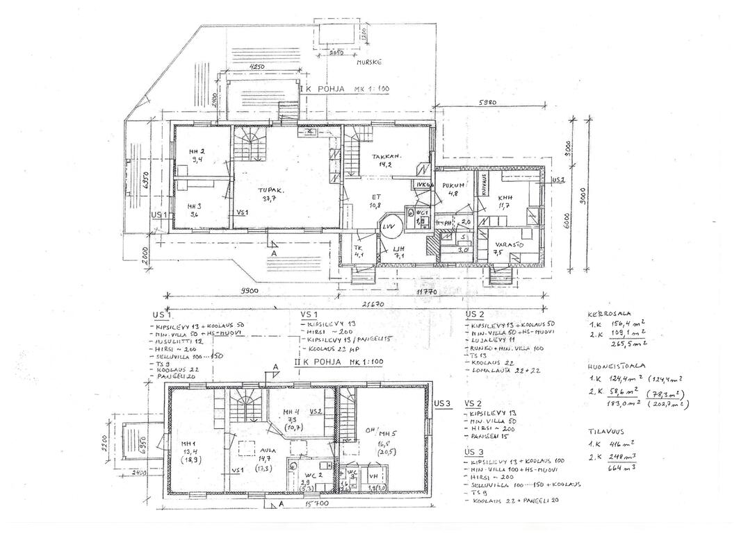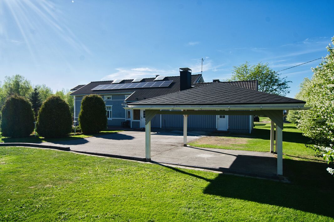| Tehdyt remontit | Lisärakennus päärakennukseen 1973, jossa autotalli, pukuhuone, sauna, lämmönjakohuone. Autotallista tehty myöhemmin kodinhoitohuone. Päärakennuksen peruskorjaus 1984 Yläkerta muutettu asuttavaksi, alakertaan keittiö uusittu, sekä ulkoseiniin lisäeriste. Uudet ikkunat MSK ja ulko-ovet, sekä kattoikkunat. Päärakennuksen vesikattoremontti 1995 Uudet ruoteet, aluskate ja kattotiilet, sekä uudet kattoikkunat. Päärakennukasen ulkoseinäremonnti hirsiosalle 2001 Hirsiosa lisäeristetty selluvillalla 100-150mm, pystykoolaus hirsien päälle, tuulensuojalevy, naulausrimat ja uusi paneeliverhous, sekä luonnonkivisokkelin lisäeristys. Päärakennuksen peruskorjaus 2008-2009 Alakertaan uusi betonilattia, lattialämmitysputket, lattialaatat Uusi iv-kone lämmöntalteenotolla ja jäähdytyksellä. Päärakennuksen lämmitysmuodonmuutos 2024 Maalämpökaivo 260m ja maalämpöpumppu CTC EcoPart 412 Aurinkopaneelit katolle 10kpl a'375W Talossa myös valokuitu |