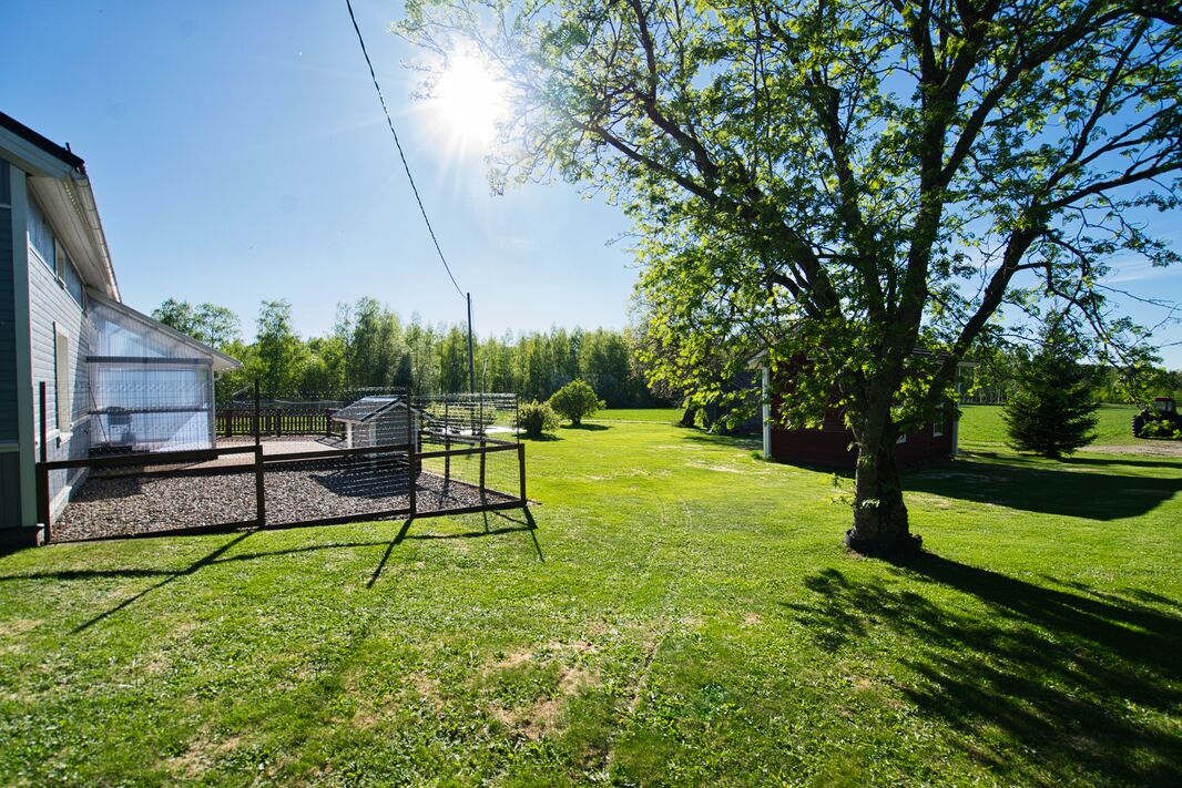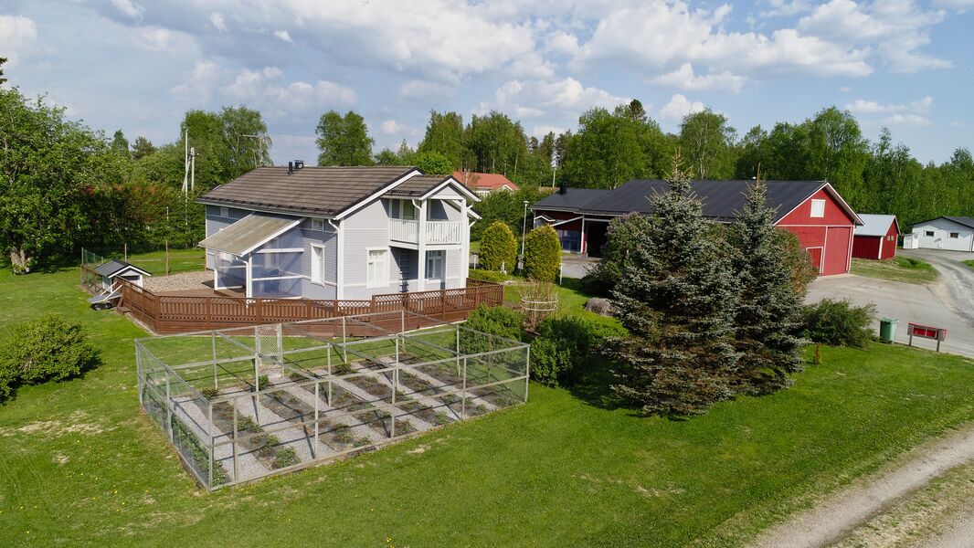 Talo sijaitsee suurella 4000 m²:n tontilla, jossa on runsaasti tilaa pysäköintiin ja ulkoiluun. Autotalli on riittävän iso ajoneuvoille tai vaikka traktorille ja toimistotilaa voidaan käyttää työhön tai harrastuksiin.