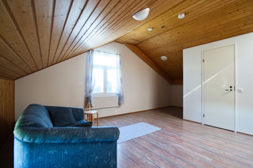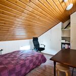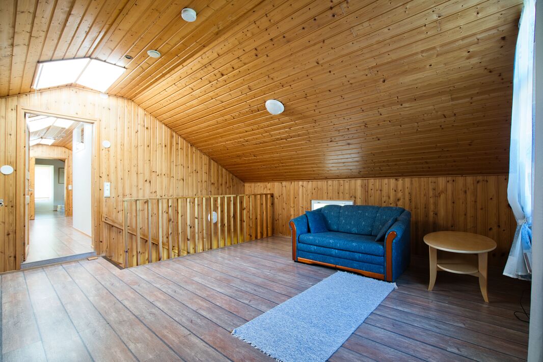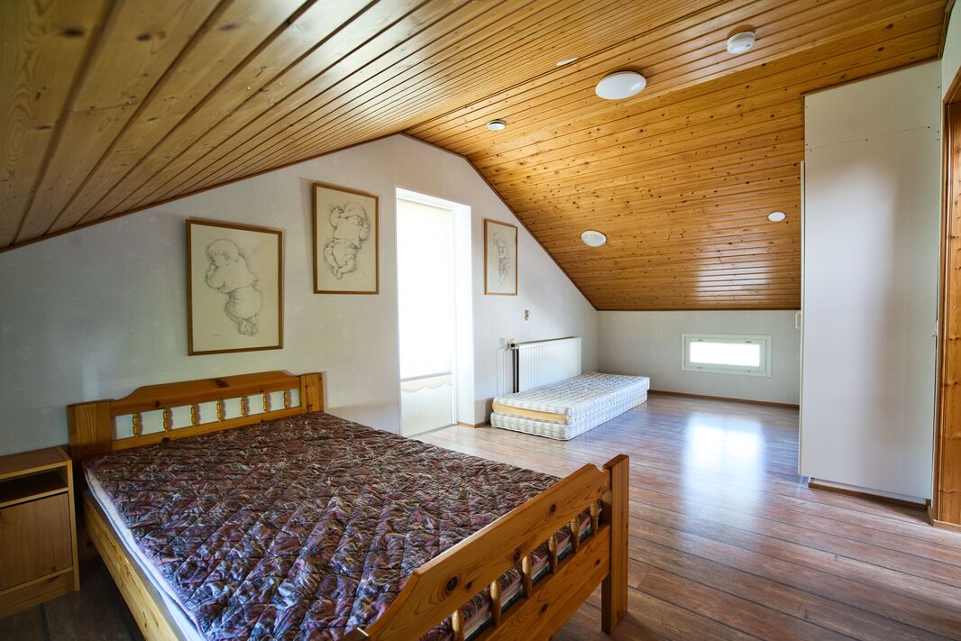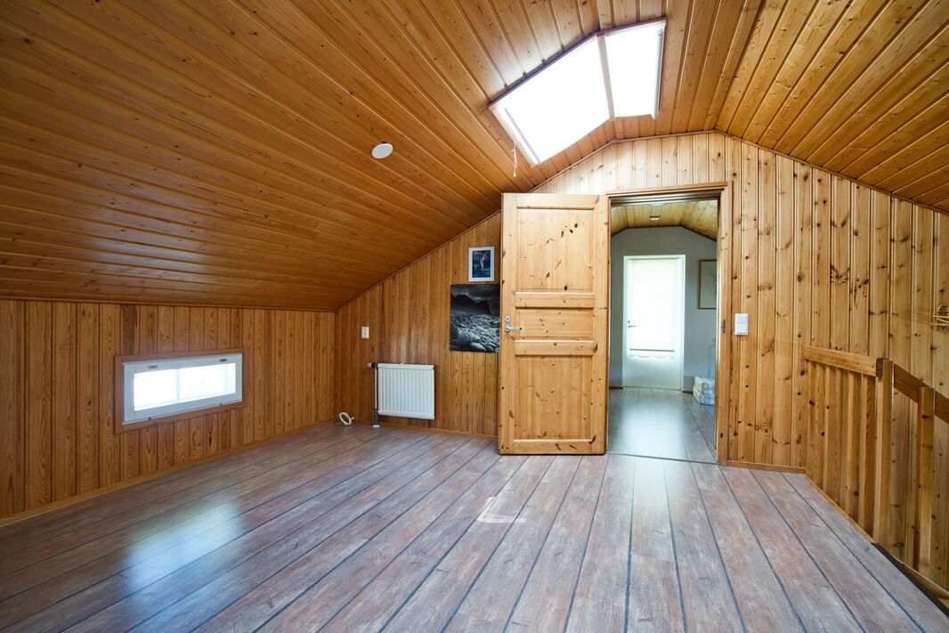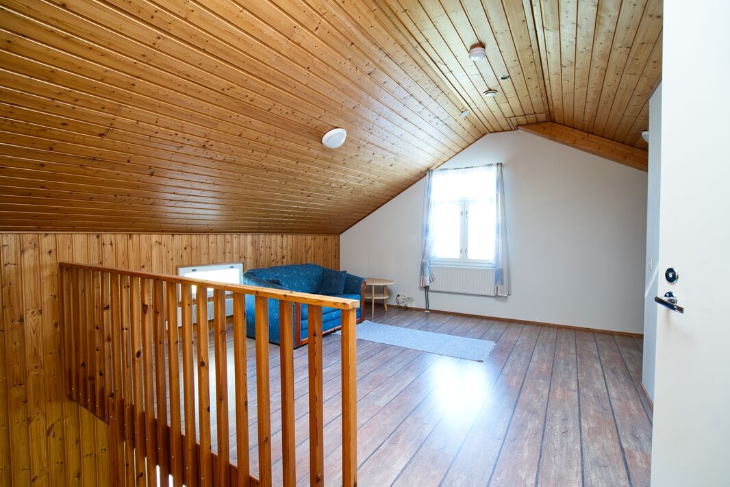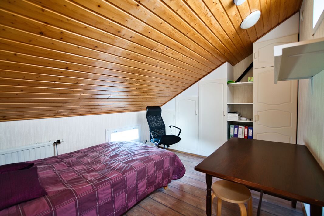 | Makuuhuoneen kuvaus | Yläkerrassa laminaatti lattiat, seinissä tapetti. Takkahuoneessa laatta lattia, puolipaneeli seinät ja maalattu lasikuitutapetti. |
