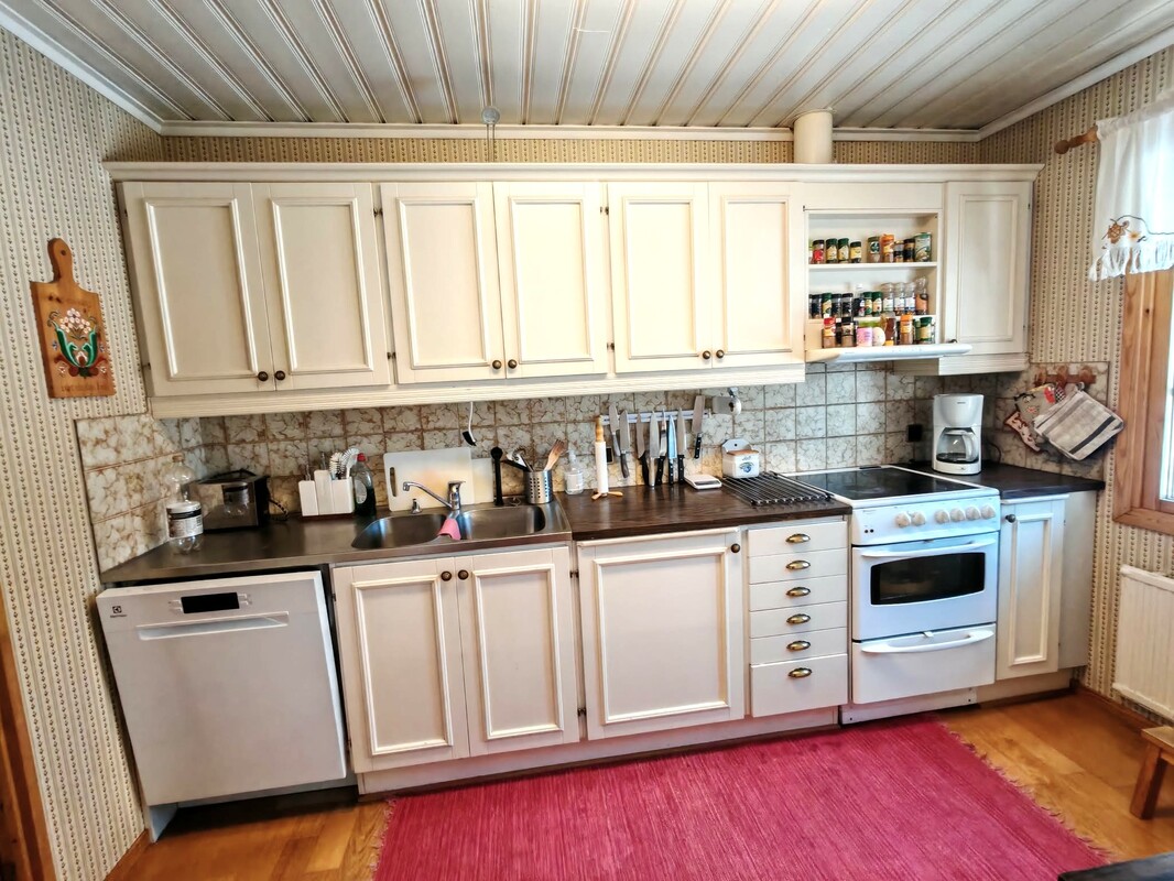| Tehdyt remontit | Alla fönstrens värmeglas förnyjade på 90- talet. Badrum+tvättrum renoverad 2005. Bruksvattenrören fönyade 2007. Bergsvärme installerad 2007. Vattentaket renoverad , två gånger målad och stuprören nya 2010. Dränering samt infarten förnyjad 2024. Kaikki ikkunoiden lämpölasit vaihdettu -90 luvulla. Kylpyhuone ja peruhuone uusittu 2005. Käyttövesiputket uusittu 2007. Kalliolämpö asennettu 2007. Vesikatto huolettu ja pintakäsitelty sekä vesirännit uusittu 2010. Salaojat ja pumppukaivo asennettu 2024. Ajotie/piha kaivinkoneella parannettu 2024 |