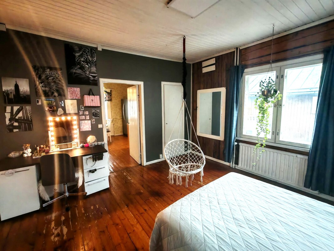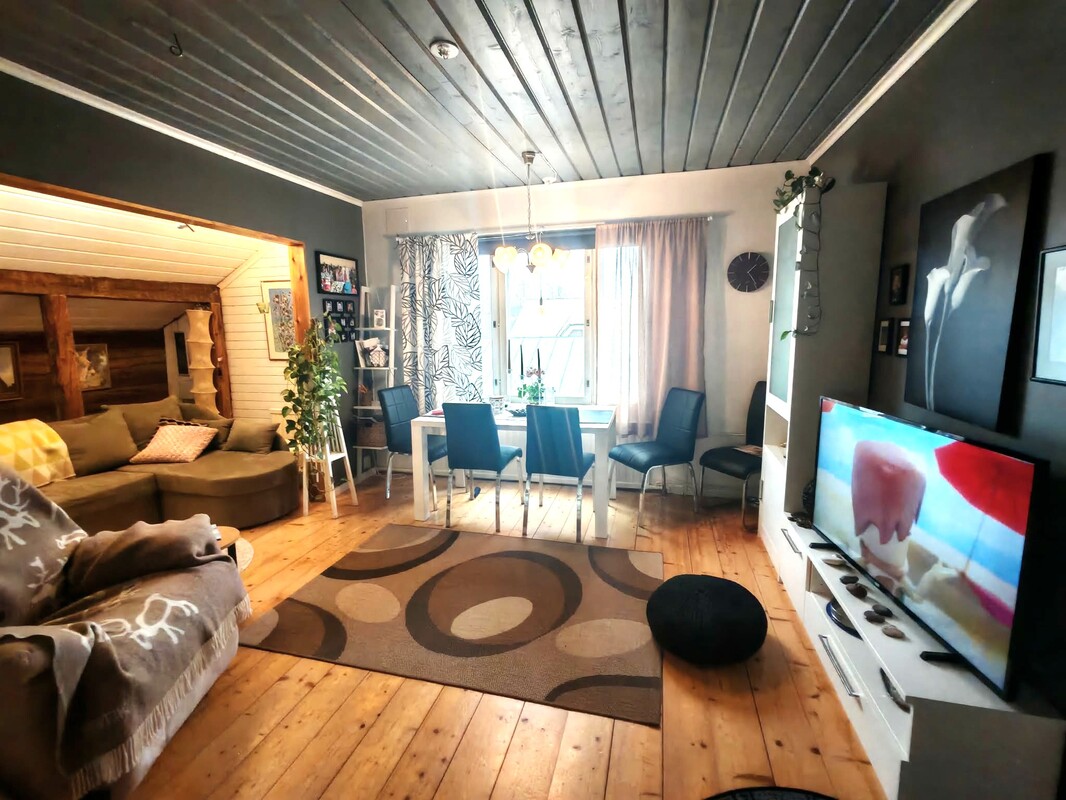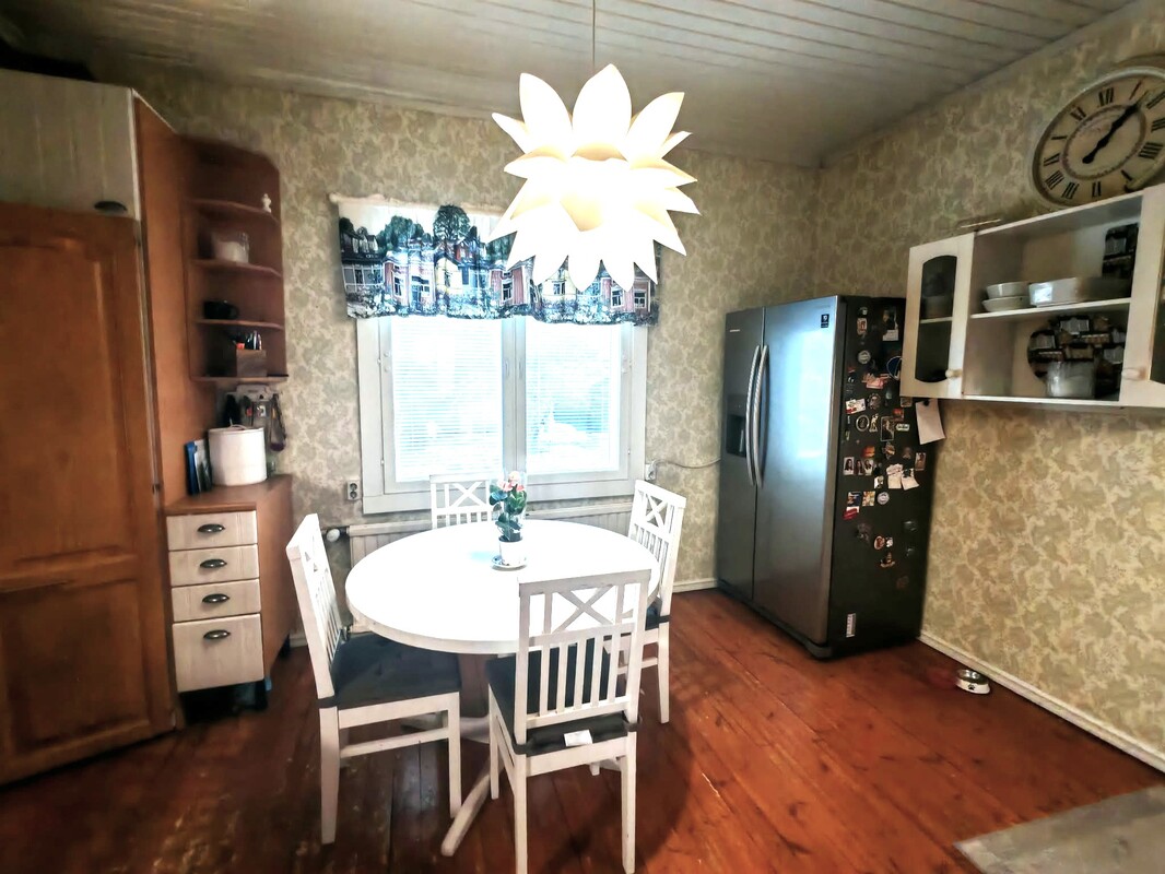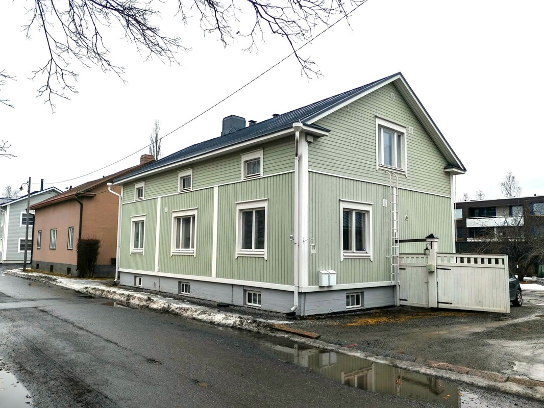 | Tehdyt remontit | 1980- luvulla talon viemäriputket vaihdettu muovisiin. 2006 käyttövesiputket vaihdettu. Kaukolämpö asennettu 2006. Kellarin pesutilan ja saunan ulkosinään väliin muurattu harkosta tuulettuva väliseinä sekä tilat remontoitu 2010. Talon sähköja uusittu eri vuosina. Keittiö remontoitu 2009. Hirsiseiniä tuotu esille. Salaojat, patolevy ja sadevesijärjestelmä asennettu 2018. Julkisivu tuulensuojalevyllä uusittu 2017. Katto maalattu 2017. Ikkunapellit, syöksytorvet sekä vesirännit uusittu 2017. Toinen yläkerran huoneistoista täysin remontoitu ja laajennettu 2020. Kellari pintaremontoitu 2021. Alakerrassa pintaremontoitu 2021. Asennettu valurauta takka 2022.. |