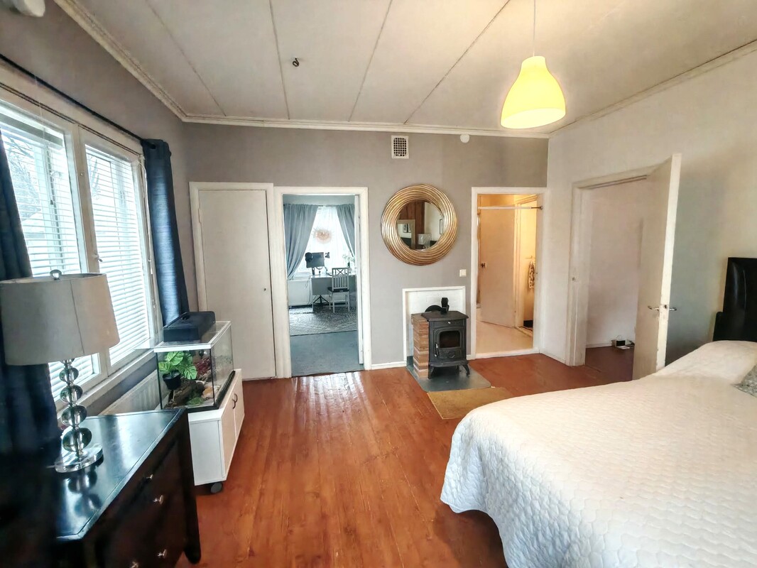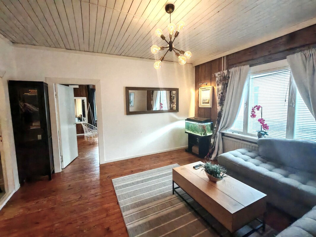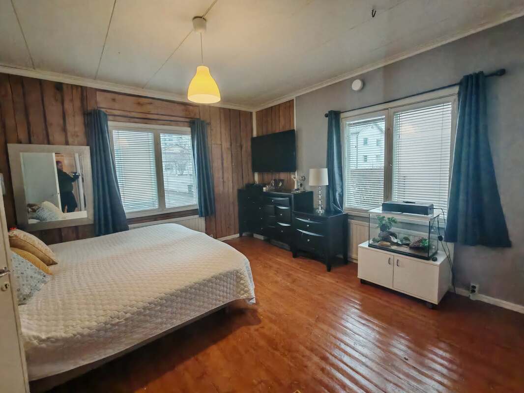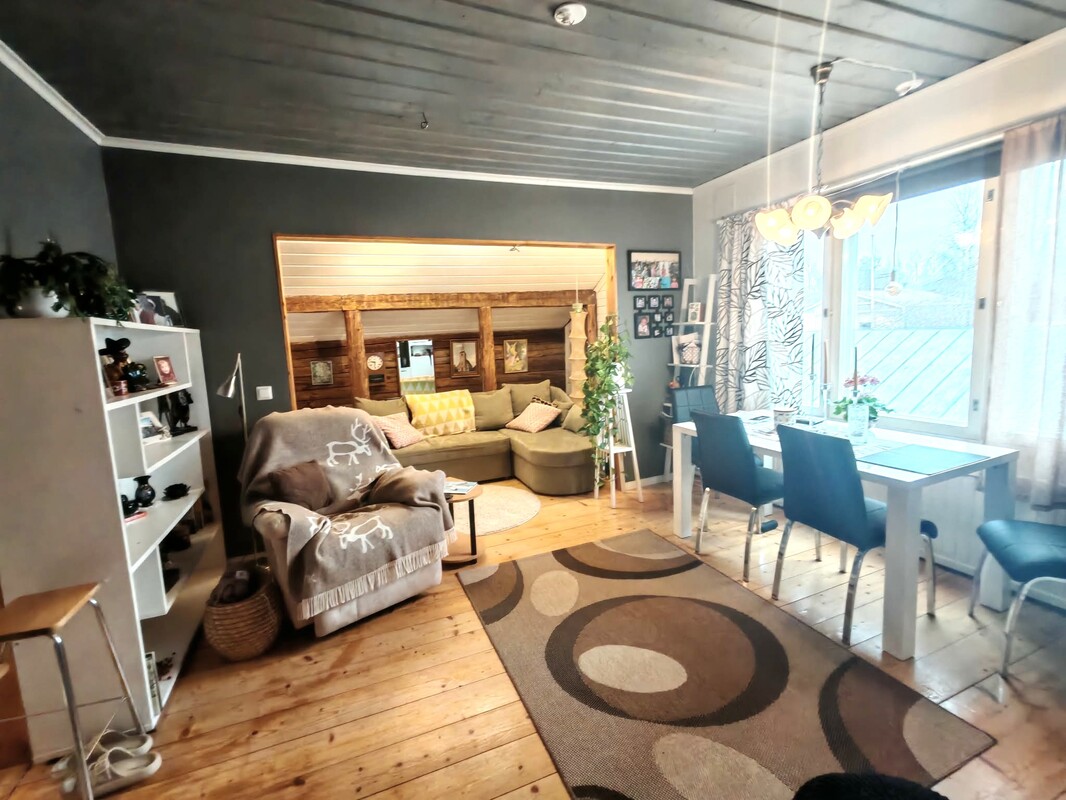| Tehdyt remontit | 1980- luvulla talon viemäriputket vaihdettu muovisiin. 2006 käyttövesiputket vaihdettu. Kaukolämpö asennettu 2006. Kellarin pesutilan ja saunan ulkosinään väliin muurattu harkosta tuulettuva väliseinä sekä tilat remontoitu 2010. Talon sähköja uusittu eri vuosina. Keittiö remontoitu 2009. Hirsiseiniä tuotu esille. Salaojat, patolevy ja sadevesijärjestelmä asennettu 2018. Julkisivu tuulensuojalevyllä uusittu 2017. Katto maalattu 2017. Ikkunapellit, syöksytorvet sekä vesirännit uusittu 2017. Toinen yläkerran huoneistoista täysin remontoitu ja laajennettu 2020. Kellari pintaremontoitu 2021. Alakerrassa pintaremontoitu 2021. Asennettu valurauta takka 2022.. |